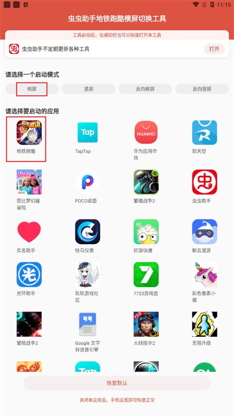 1、首先进入虫虫助手地铁跑酷横屏切换工具;