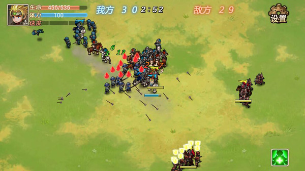 1、将领,技能,兵种,阵容皆可自由搭配;2、玩家要亲自控制军团长—即英雄小队参与战斗,感受战斗的乐趣;