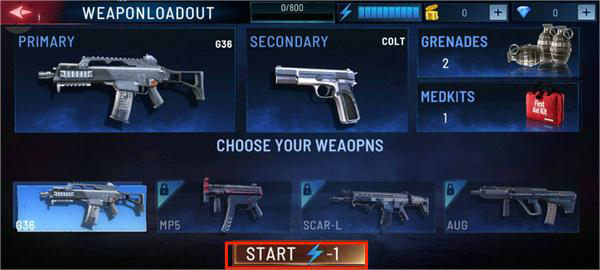 在进入游戏之前,会有一个武器选择的机会,你可以在商店购买更加强大的武器然后进行更换。