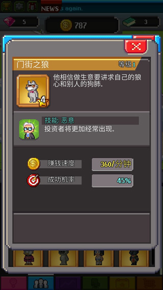 最后就是每个经纪人都有自己的专属技能,所以挑选经纪人时不能光看其赚钱速度和投资成功率,专属技能很多时候能够起到的效果会远远高于其多赚的那点钱。