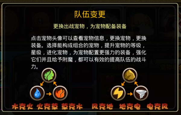 (3)调配队伍的时候,需根据敌方阵容选择出战的小精灵。点击宠物头像即可查看宠物的各种属性信息。比如说敌方阵容里有远程雷电球,己方就要考虑选择同样是远程的地系小精灵。