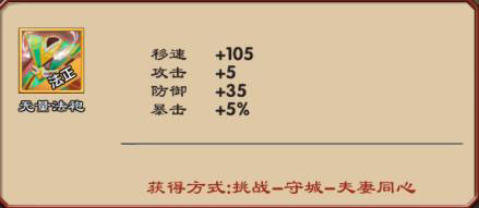 2、关卡挑战:例如无量发袍:法正的专属,可通过挑战-守城-夫妻同心关卡有机会获得!