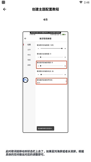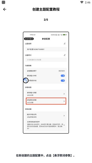 2、在新创建的主题配置中,点击【悬浮歌词参数】。