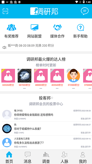 1、问卷多,每天都会上线大量的新调查,您可以选择适合您目前情况的调查作答;2、积分高,每个调查的积分都尽全力给会员以最大的获利,配合着大量的任务,在调研邦你可以赚到令你满意的零花钱;