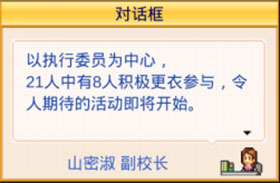活动结束后,除了游戏点数获得了提升之外,入学志愿者的人数也会有所改变哦。活动类型决定了入学志愿者的类型。比如,我们举办了运动会,那么运动系的入学志愿者数量就会出现较大的增涨。