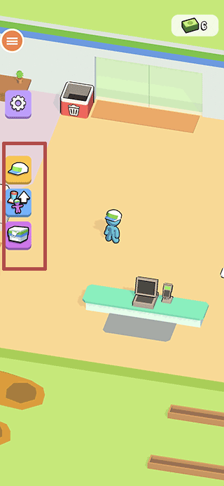 1、进入游戏后,红色方框内的按钮是升级,可以对人物、机器、超市等进行升级;