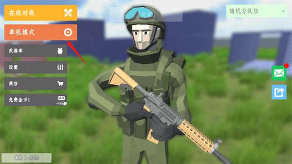 1、进入游戏后点击单机模式。