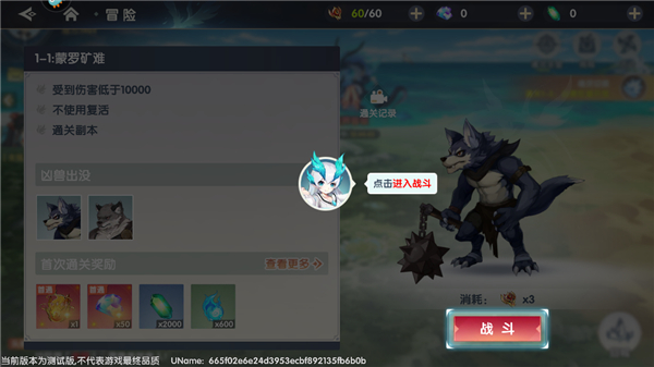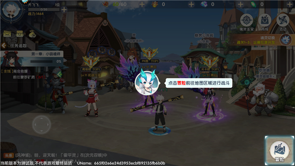 6、过了新手教程后,正式进入游戏首页,点击冒险,前往地图区域进行战斗;