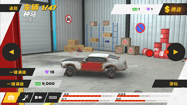 除了大赛场,赛车也是一个非常重要的因素,而这里可以看到所选赛车的速度、加速度、氮气、操控等信息,一键升级就能够获得一辆优质赛车。最新还有坦克战斗的玩法模式,快来下载疯狂驾驶吧!