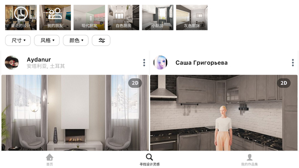 2、点击寻找设计灵感,你可以查看其它用户设计的厨房;