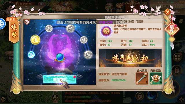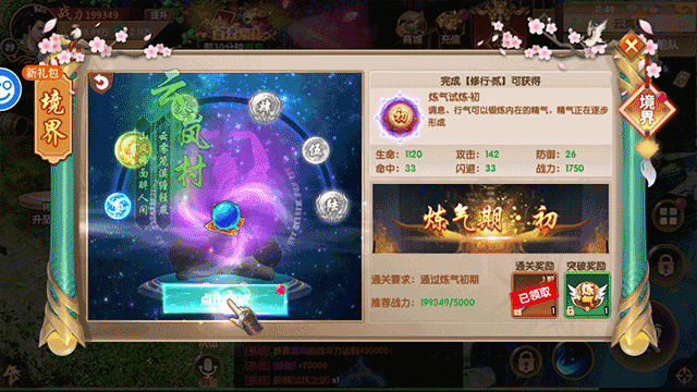1、运行游戏后,在获得了第一只坐骑后玩家就可以通过任务提高自己的境界了,在这里选择并点击“当前境界”的区域选项;