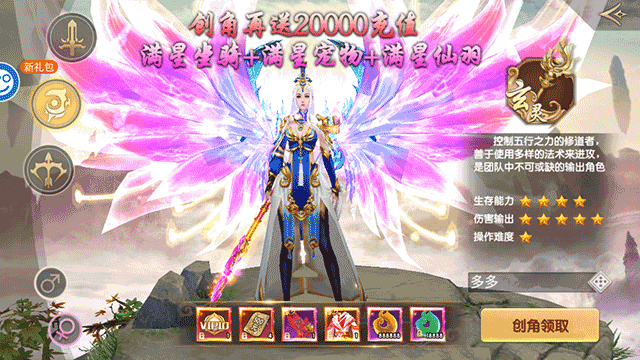 1、上线送vip10,2000刷充现金卡,永久豪华羽翼,永久豪华时装,888888仙玉