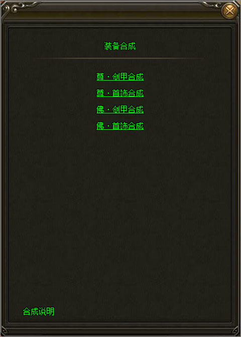在装备合成中,玩家可以将相同阶级的2件装备放在背包中进行合成,可合成的最低装备等级需要29阶以上的武器、盔甲,33阶以上首饰装备。