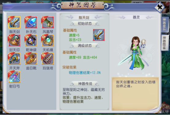 4、神器需要逐步养成,升级需要消耗“神器精华”到达整十数等级时。需要额外道具“飞天玄晶”