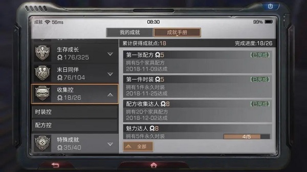 末日幸存者:就是你登录游戏的天数,分为1天、7天、30天、360天这四个档次,相信大家都已经到达30天这个档次啦,在这里可以获得23成就点。