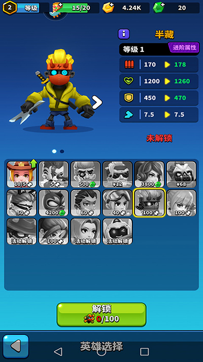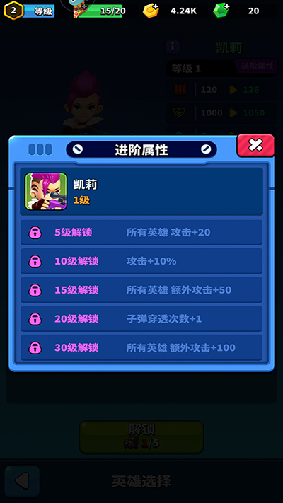 多达近二十个英雄角色,玩家进入英雄模式中便可逐步启用,让自己的技能飞升;