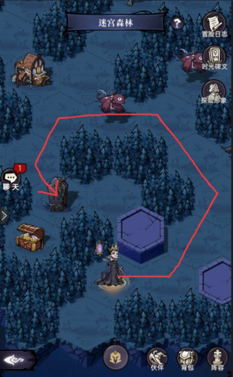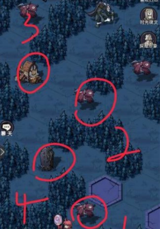(1)迷宫森林作为游戏的副本,玩家期望快速通关,首先要注意走位,然后选择合适的阵容和战斗力,从而轻松过关。当进入地图,玩家开局之后,朝着左上方行走,在上方发现三个陷阱。玩家踩掉一个陷阱,再折返回来,然后喝一些泉水,恢复属性,接下来前往进攻恶魔。