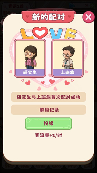 1、进行搭配,将前往婚介所的男女进行搭配,促成他们相亲成功!