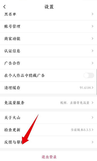 3、进入设置界面,往下拉,点击反馈与帮助;