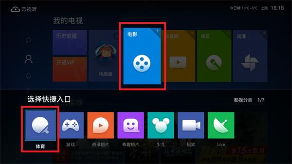 2、长按OK键,出现替换模块,共有9个内容板块随心切换(电视剧、电影、体育、Live、综艺、资讯短片、纪实、动漫、少儿);