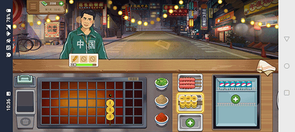 1、进入游戏我们将经营一个夜晚的烧烤摊,你将会发现有众多的明星会过来吃你的烧烤。