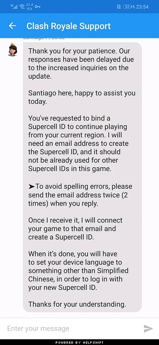 10、发送完成后,等待十分钟左右,关掉国际版皇室战争,重新打开。通过supercell ID登录。邮箱就是你刚才发送的邮箱。然后再完成邮箱验证后就可以通过国际版皇室战争登录原来的账号了。