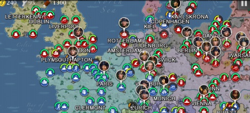 4、最后行程对法国的合围的攻势。开始法国很强势,不过这时候已经是强弩之末了。注意要利用一些城市的酒馆,可以招募到将军。因为你的将军只能上三个。