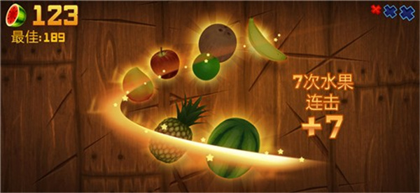 7、不一定出现水果就去切,可以让水果飞一会,与其他水果相汇或者成直线时进行一次性切割,连击的几率更大。