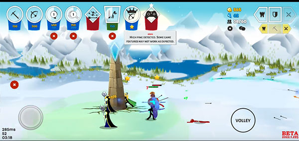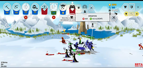 第九关:巨人关卡,先养两名剑士,操控其中一名跟巨人绕走位,另外一名备用,经济上来后全养弓箭手