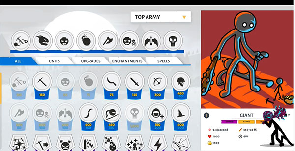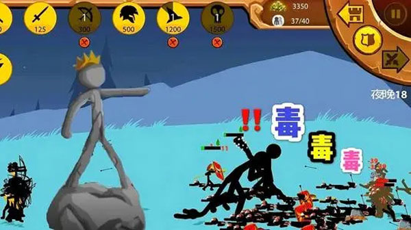 第十二关:最终对战,这时敌方用的是熔岩皮肤,十分强悍,前期两排剑士一排弓箭手,7个矿工发展经济(备上淘金热*3)后期养两巨人开路,两排弓箭手掩护,四排剑士拆雕像(备好剑士狂怒*2,一个拆雕像,一个防援兵),敌方雕像没血后会变出一个巨人(银甲大帝),这时赶紧撤退(防守模式),不要跟他硬刚,因为他伤害非常高。这时拿出对付巨人的套路,不过千万不要皮。打败他之后就会按照剧情发展,跟着剧情走就好了。