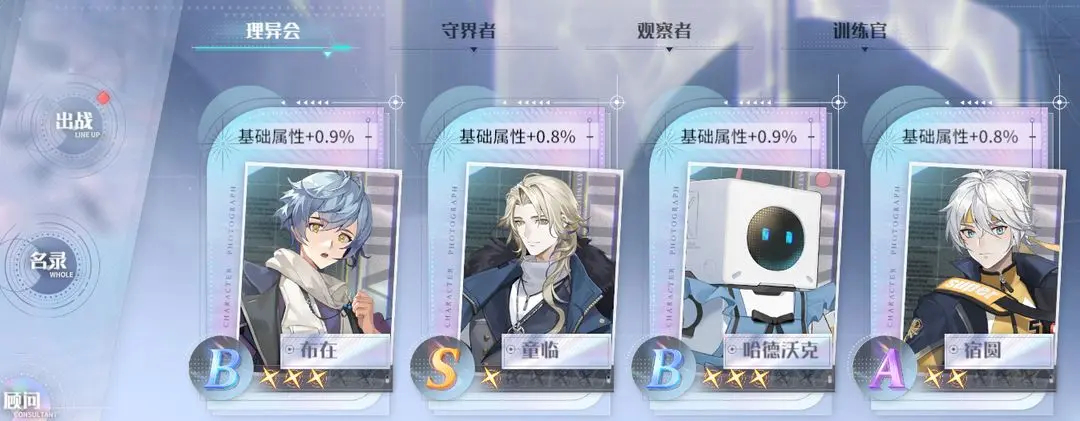 顾问星级越高,基础属性增益越高,所以你的B级、A级高星角色就可以用在这里获得加成啦。