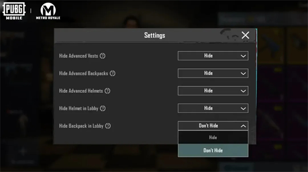 另外,以后各位特种兵想显示或隐藏头盔和背囊的模型外观时,可直接在Metro Royale大厅打开战备功能,点击左上角的小眼睛按钮来调整设定。无需再切换回到经典大厅,操作更便捷!