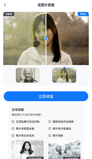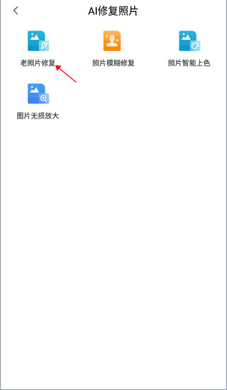 2、根据你照片的损害程度来选择相应的功能,点击“老照片修复”