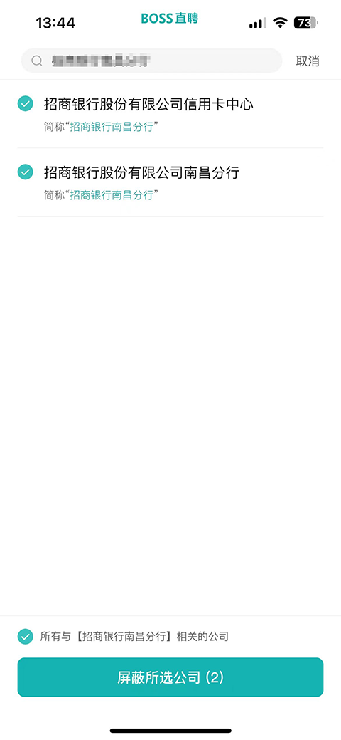4、点击“添加屏蔽公司”,然后输入要屏蔽的公司名称,选择并确认屏蔽。