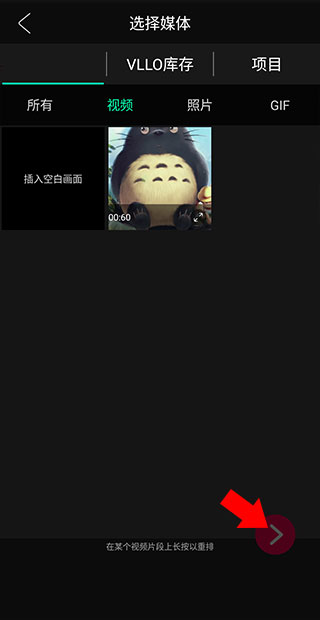 3、素材选择完成之后,点击右下方的红色箭头图标