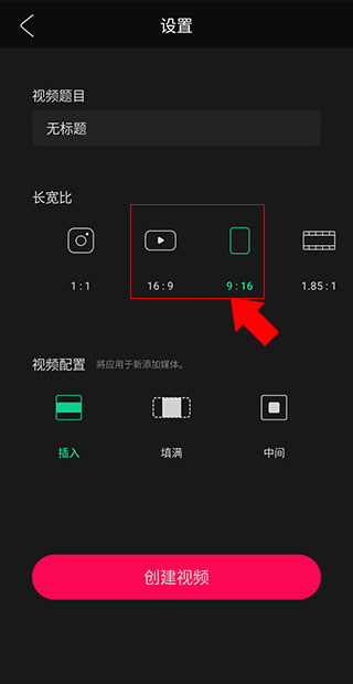 4、来到下方界面后大家根据自己视频的参数进行选择,选择完成后点击创建视频(视频比例可在文件详细信息除查看,一般横屏选16:9,竖屏选9:16)
