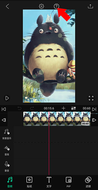 5、此时大家就可以来到视频的编辑工作台了,这里功能非常多就不一一介绍了,想详细了解的可查看官方教程了解,仅需点击视频上方的问号即可了解一些基础操作方法