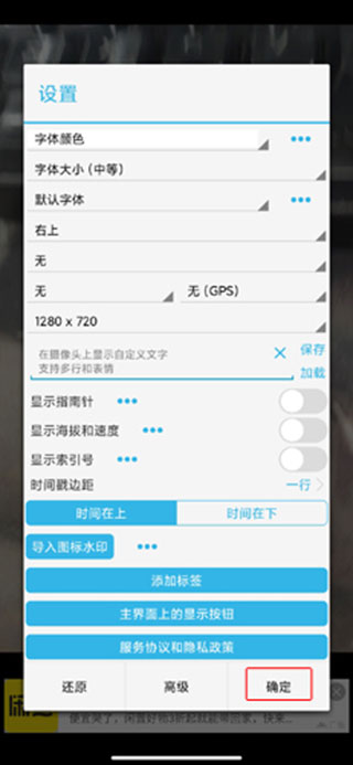 ● 在拍照或者录像时添加当前时间和位置。您可以很容易地更改时间格式,或选择周围的地点。您还可以任意地设置时间地格式,在视频上的位置,改变字体,字体颜色,大小及透明度。