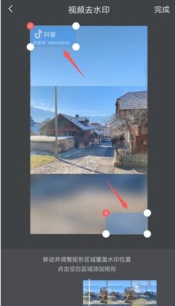 第四步:视频水印被矩形区域完全覆盖后,点击视频右上角的“完成”,等待视频水印去除后,自动跳转视频保存页面。
