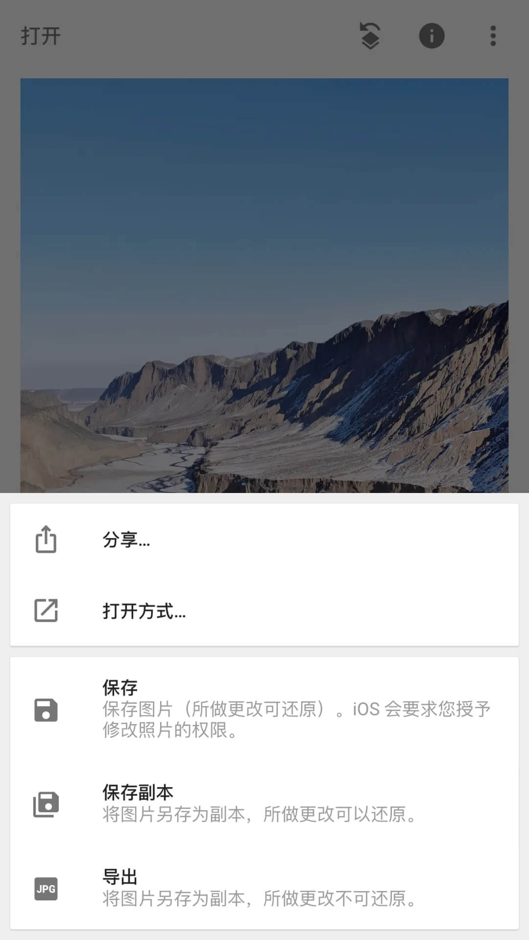 导出:处理完照片后,点击这里导出照片,通常我们会选择【保存副本】,这项功能会帮我们保存一张新的照片,【保存】按钮会覆盖原图,原图就找不回了。