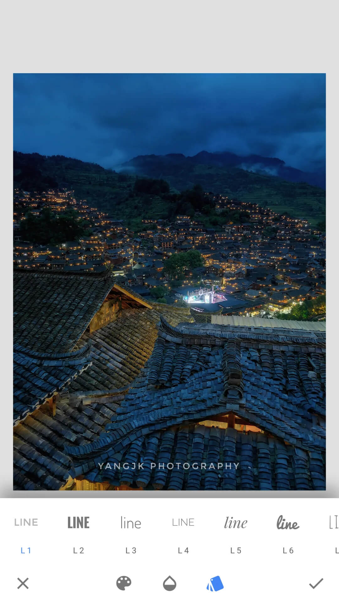 文字:文字工具能够在画面中添加文字,只是Snapseed的文字工具并不那么强大,而且对中文支持度也不算太高,中文字体很少,比较适合添加英文,一般比较常用来给照片添加水印。