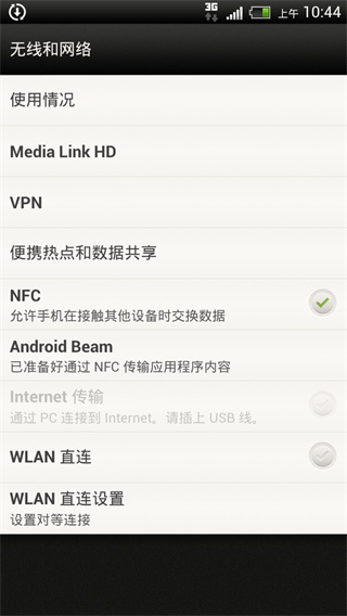 1、您的手机必须支持NFC功能,NFC打开方法,以HTC ONE X型号为例:进入“设置”菜单,在“无线和网络”项下点击“更多”。