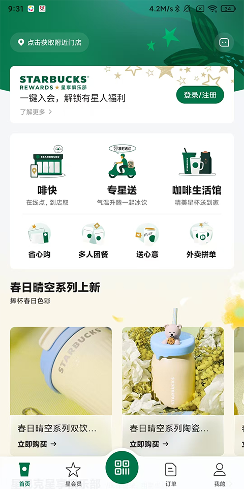 星巴克App是星巴克中国官方App,一款线上点单配送软件,专为咖啡爱好者设计,提供便捷的咖啡购买、会员管理、门店查找等功能,旨在为用户打造无缝的数字化咖啡体验。星巴克App支持在线点单,用户可选择到店自取(“啡快”)或配送到家(“专星送”),提供个性化定制饮品服务,用户可根据喜好选择杯型、温度、配料等,更有线下精准定位附近的星巴克门店,提供路线指引和签到功能,方便用户快速找到最近的门店。