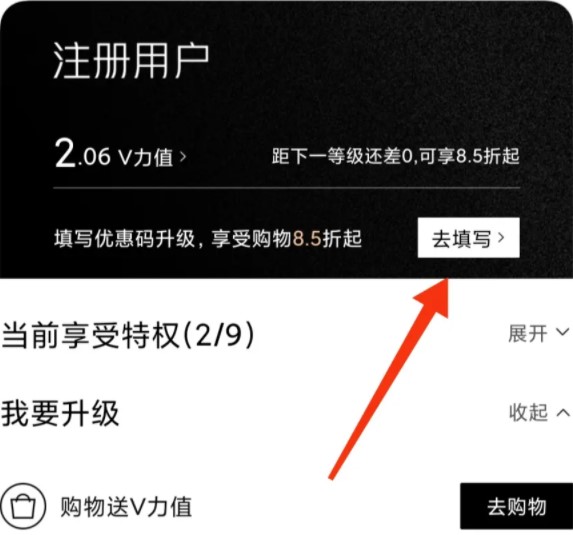 2、如果注册时跳过填写优惠码,这时我们可以任下一单商品,下单后在会员界面就会出现去填写,输入优惠码为:A8A8(如下图)。
