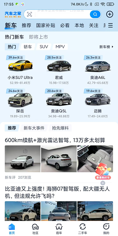 汽车之家App,5亿人都在用的汽车APP,为您提供看车、买车、用车等所有环节准确、快捷的一站式服务,专业内容,更快更全,信息更快、更全、更专业的中国汽车媒体。
