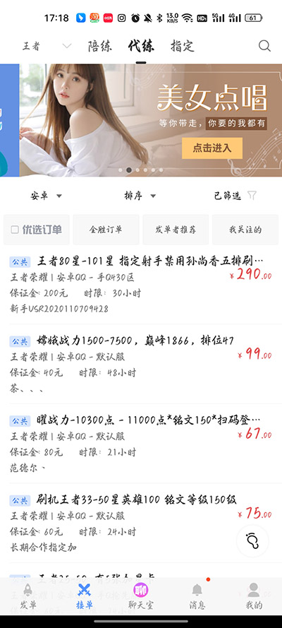 拥有高效的订单管理功能,通过搜索让用户可以轻松找到合适的订单,同时还可以查看订单的详细信息,包括订单的价格、代练的时间、代练的等级等;