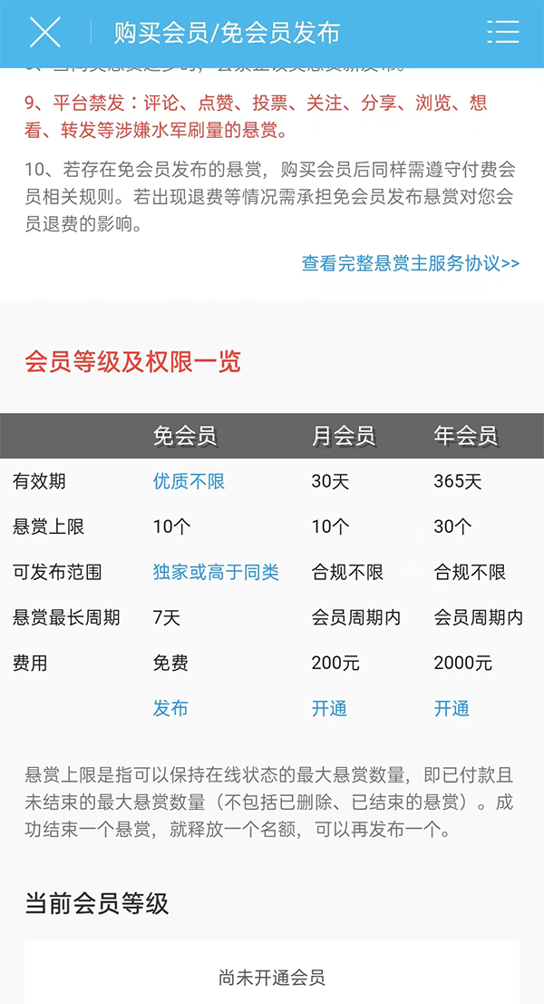 4、悬赏主免费额度为:免费月额度=1000+信誉积分/10,最高3000元。悬赏主超过免费额度需收取兑换金额的2%为手续费,为避免手续费可以分月兑换。
