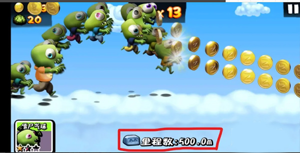 2、道具:跑的过程中会有一个类似于,箱子的东西,跳起来碰到他,就会随机给你一个道具。道具的种类貌似有波浪(超爱)UFO(隔段时间来个僵尸)小金人(碰到的障碍都会变成金币)橄榄球员(铁头功2333)忍者(跳的贼高,可以把障碍切开)大头僵尸(僵尸会全部飘到上方。长摁屏幕下降)等等等等