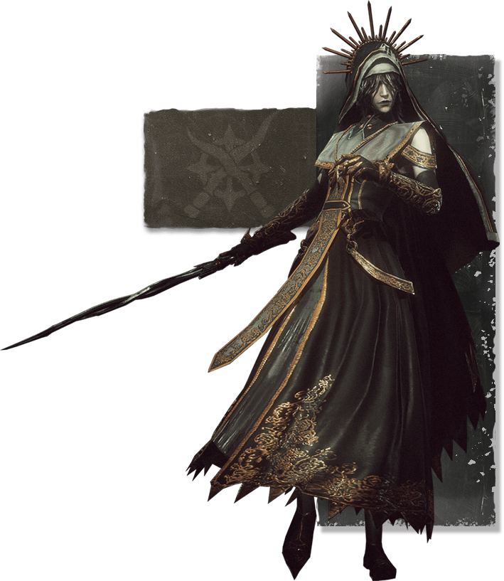 贝妮塔作为教会的审判修女,为教会清除异端。她的武器“净血圣座”可以从污秽中提取净血,但代价是自己的生命。