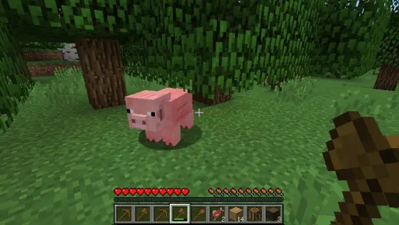 除此之外,如果我们发现了其他小动物,那么大可以用手中的道具去尝试攻击他们来获取资源,比方说我们在这里就遇到了一头迷失方向的小猪……